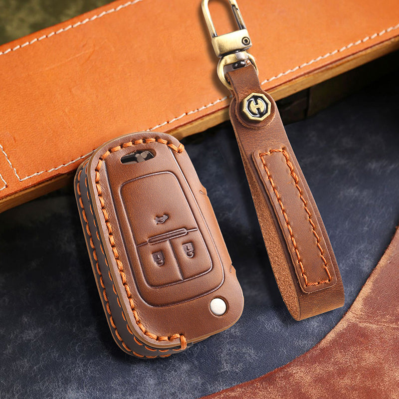 Genuine Cowhide Leather Key Fob Cover for Buick, Car Key Shell Case, Keychain Protector, Fits 3-7 Button Buick Key Fobs