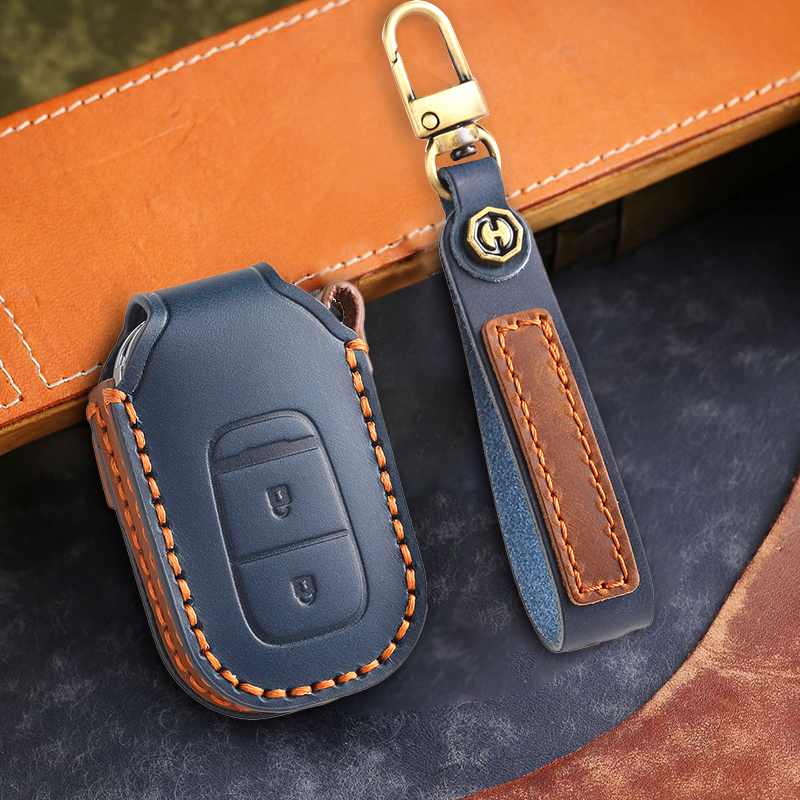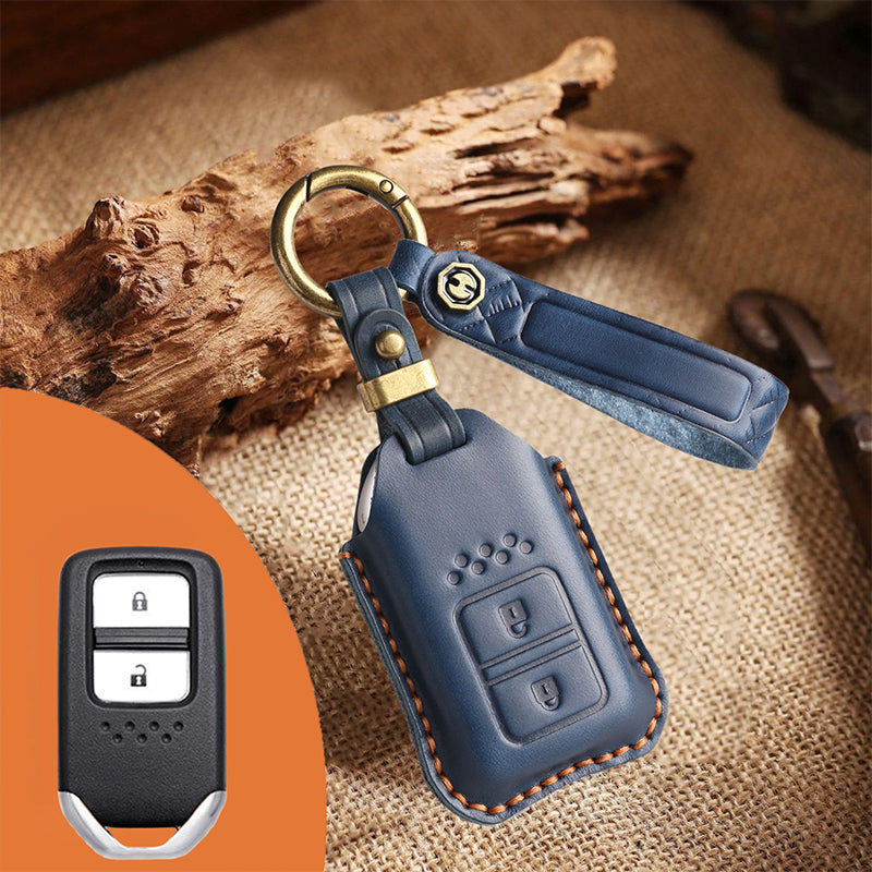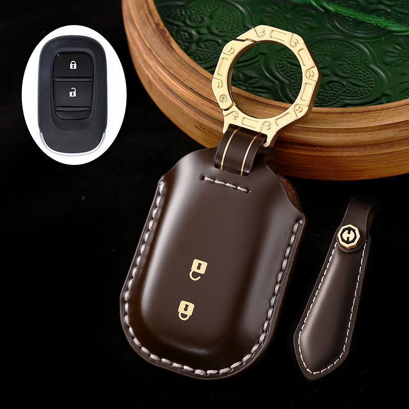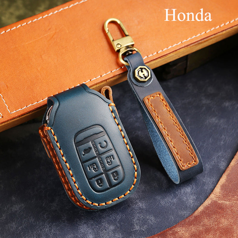 High-End Leather Car Key Cover Compatible with Honda Accord, Civic, CR-V, HR-V, Odyssey, etc. (2, 3, 4, 5, or 6-Button Smart Key Cover)