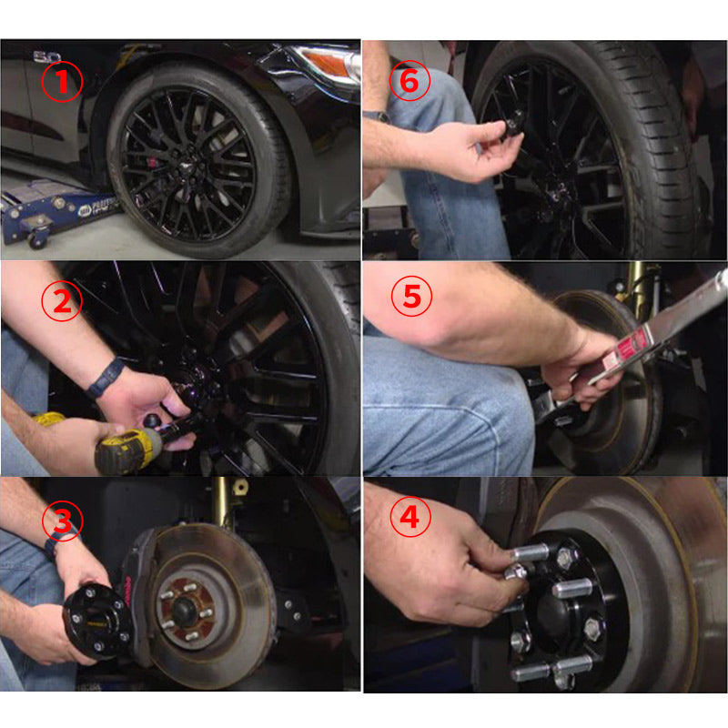 Step 6: Reinstall the wheel onto the assembly/lug studs Secure and hand-tighten each lug nut before tightening them down. Tighten them in a star pattern to ensure the load is not applied unevenly.