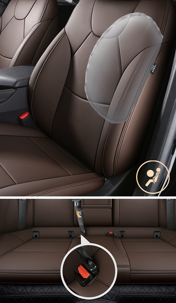 Reserve Airbag Opening Pre-designed airbag and seatbelt openings ensure compatibility with the vehicle’s safety features, maintaining full functionality without interfering with original safety configurations.