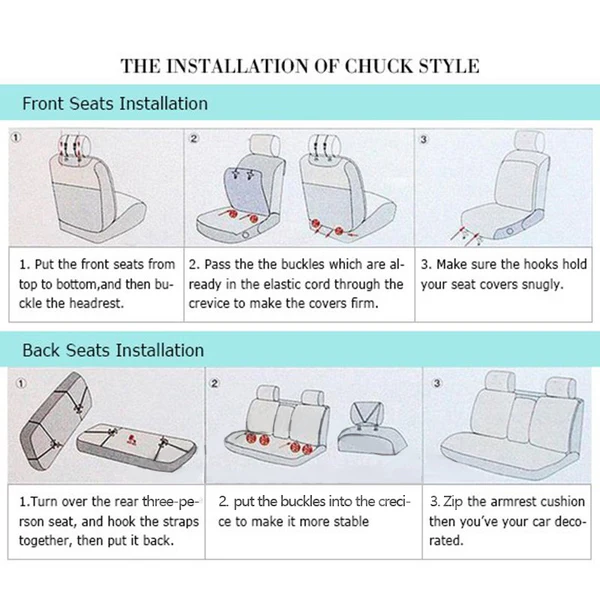 Standard All Seats: Front seat backrest cover x 2 Front seat cushion cover x 2 Front seat headrest cover x 2 Rear seat backrest cover x 2 Rear seat headrest cover x 2 Rear seat three-seater cushion cover x 1