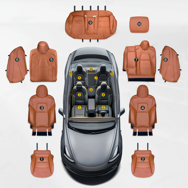 Tailor-made based on the original data of Model 3/ Highland(2016-2025)/ Model Y/ Juniper(2020-2025), the front and rear seats are fully covered. Make your car look more luxurious.