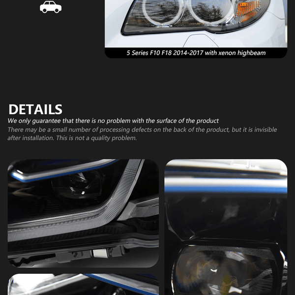 【Perfect Fit for BMW 5 Series F10】 Designed specifically for the 2011–2017 BMW 5 Series. Direct bolt-on replacement for factory headlights—no modification needed.