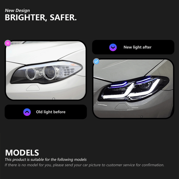 Easy Installation & Compatibility Plug and Play LED Dual Lens Headlights for BMW 5 Series F10 (2011–2017) - No coding or extra wiring required, dock with the original car plug.
