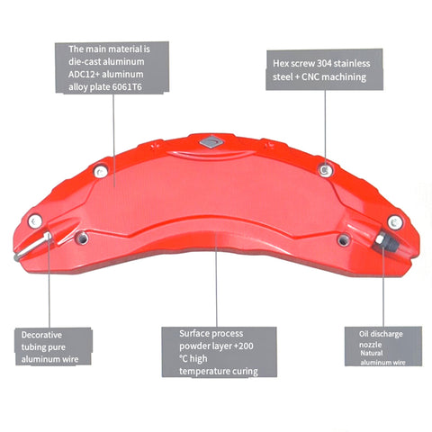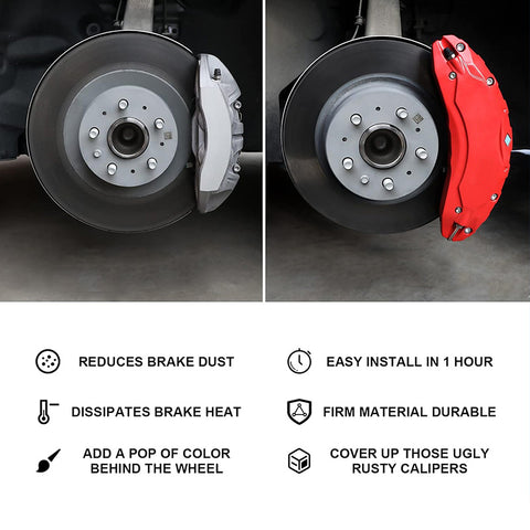 - 【Full-matching Design】 This set of brake caliper covers is designed by a professional team and perfectly fits all sizes and specifications of the original car. Safer and more reliable than similar products, each brake caliper cover undergoes rigorous testing.