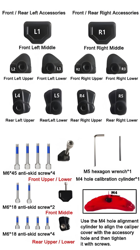 The picture above shows the caliper cover and related accessories suitable for Model 3.