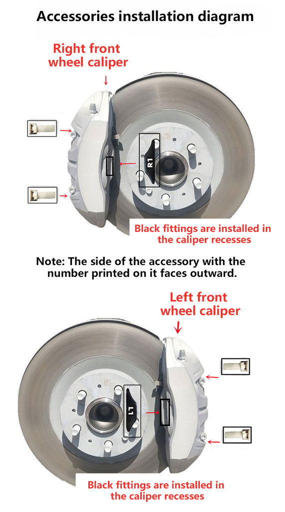 - We provide installation diagrams and videos of the brake caliper cover. You can install it according to the prompts. If you encounter any problems, please contact us by email. Of course, you can also choose to contact a nearby auto repairman for professional installation, everything depends on your arrangements.