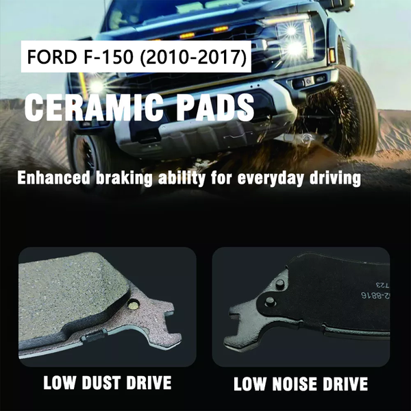 Upgrade your vehicle's braking system with this Front & Rear Ceramic Brake Pads Kit. With its high-quality ceramic material, these brake pads enhance performance and provide a smooth braking experience. Designed specifically for the 2010-2017 Ford F-150, this kit includes both front and rear brake pads with included hardware.
