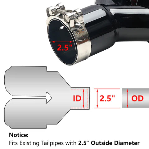 - 【Universal type】Applicable to most cars, inlet diameter: 63mm/2.5 inches (applicable to 60mm/2.4 inch Outer diameter original tailpipe). Outlet diameter: 89 mm / 3.5 inches Please confirm the size before buying!
