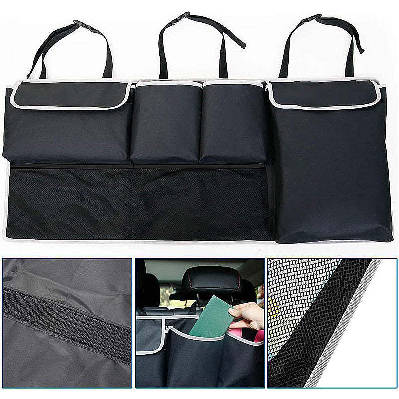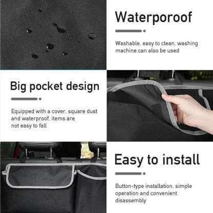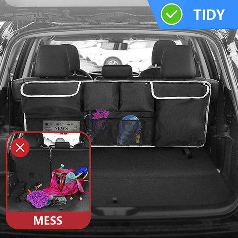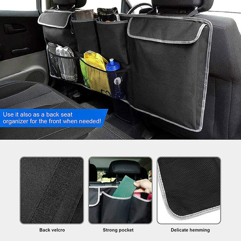 - 【Sturdy and Does Not Sagging】Made of 600D Oxford cloth and reinforced splicing, the hanging SUV trunk storage piece has good load-bearing capacity. The rear hook and loop fastener make it stick to the back seat so that it does not shake when driving.