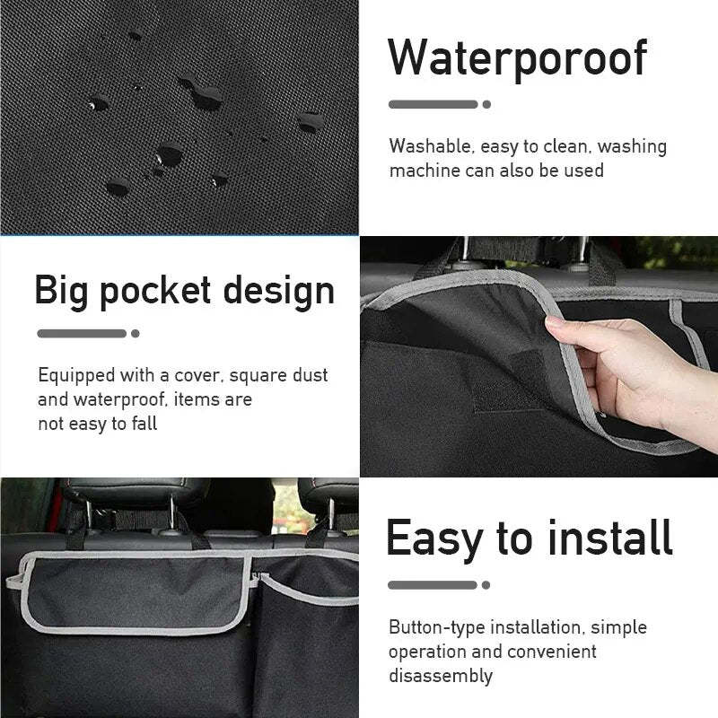 - 【Easy to Use】Tie the 3 adjustable straps to the headrest and attach the straps to the back of the chair. You can put in any items you want. This car storage box and storage box are also easy to disassemble when not in use. and fold. Suitable for cars with suspended headrests, such as SUVs, MPVs, etc.