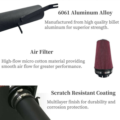 【Easy to Install with Basic Hand Tools】The air intakes are very easy to install on your car or truck. A typical air intake installation can be done with a screwdriver, pliers, and a ratchet set in 90 minutes or less! We specifically engineer their intake kits to use existing factory holes and mounting points, making installation simple. The vast majority of our cold air induction systems do not require any cutting or drilling.