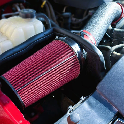 【Dry Air Filter】Each intake kit comes with a huge, highly efficient air filter which results in better performance and better protection for your engine. Our filter do not require oil, it is reusable and washable. You can wash it with soap and water, rinse it until it is all dry up, and use it again. We recommend you check every 5,000 miles to see if it needs to be washed/cleaned.