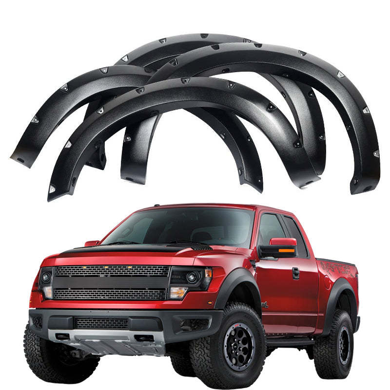 Fender Flares for 2009-2020 Ford F-150, Rough Textured Bolt-Riveted Style, 4-Piece Set