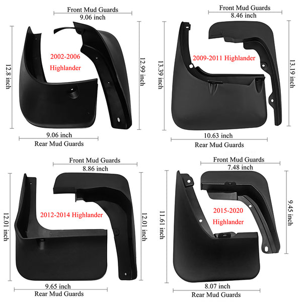 Car Mud Flaps for Toyota Highlander 2002-2024 Mud Flaps Splash Guard Front Rear Mudguards car Splash Guards