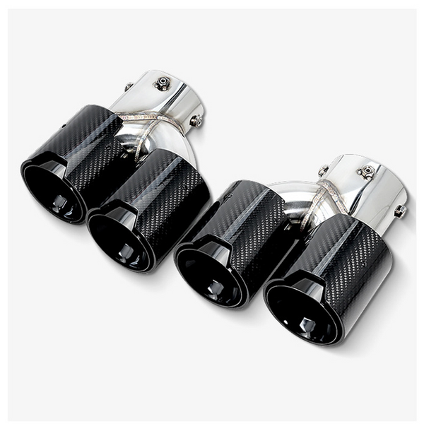 This stunning carbon fiber dual muffler tip gives your BlMW that killer, race-inspired look. Crafted from premium stainless steel and real carbon fiber, this piece is an absolute head-turner that makes your ride stand out. The sleek, bold design features dual outlets that give your exhaust a muscular, aggressive appearance. The glossy carbon fiber accents add a touch of high-performance style that'll have everyone turning to admire your ride. This muffler tip is a universal fit. So it'll work with a wide range of BMW models. Installation is a breeze, too - bolt it on and you're good to go. No fuss, no muss.