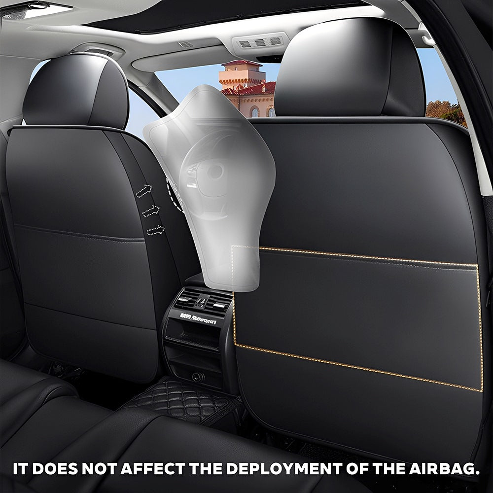 Special side stitching ensures full airbag compatibility. Seat belt slots and button areas are reserved for seamless use of all safety functions.