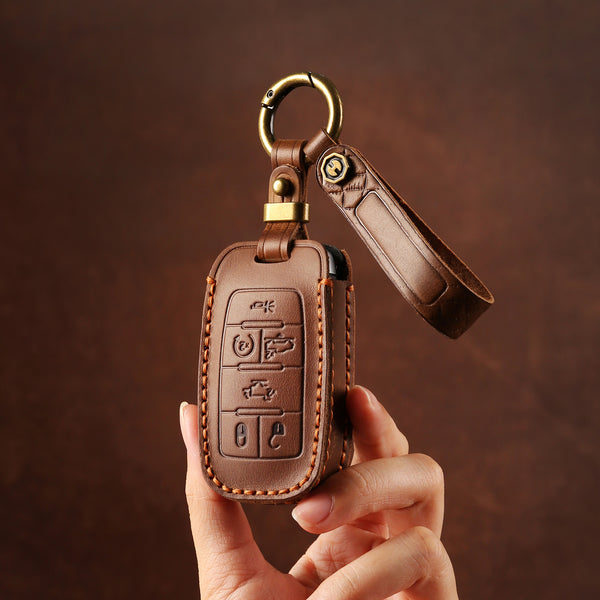 Genuine Leather Key Fob Case Compatible with RAM 1500, 2500, 3500, 4500, 5500 Pickup Trucks
