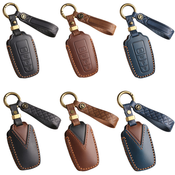 Genuine Leather Key Fob Cover for Toyota Tundra, Sequoia, Sienna, Camry, Corolla, Highlander, Prius Prime, RAV4 Prime, C-HR