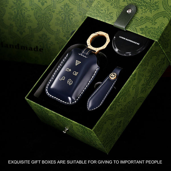 Gift Box Packaging: The product is uniformly packaged in a green gift box, making it a great gift. Gift box includes key cover + key chain, leather conditioning oil and instruction manual.