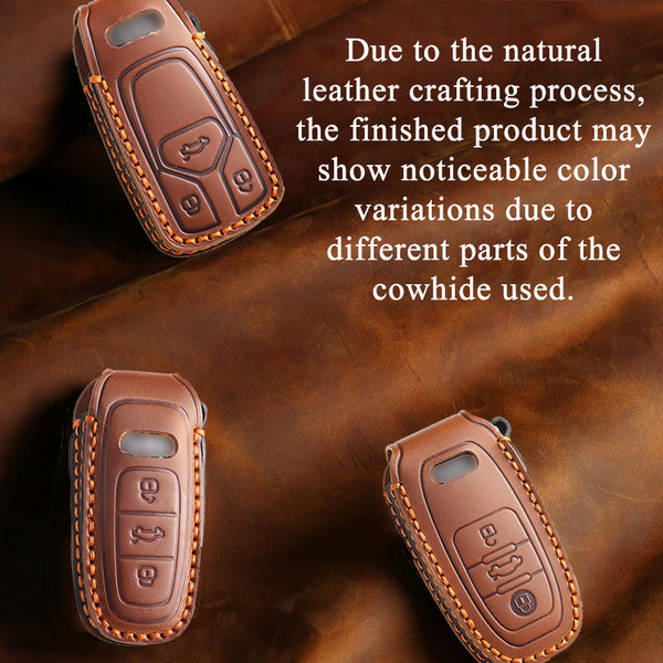 Precise Fit: Designed for Audi car keys, this leather key case offers a snug fit without interfering with button functions. Lock, unlock, and access your trunk effortlessly while enjoying luxury and protection. (Note: Button configurations may vary by year and model—please check the images.)
