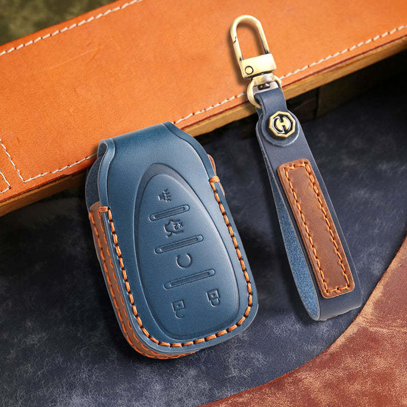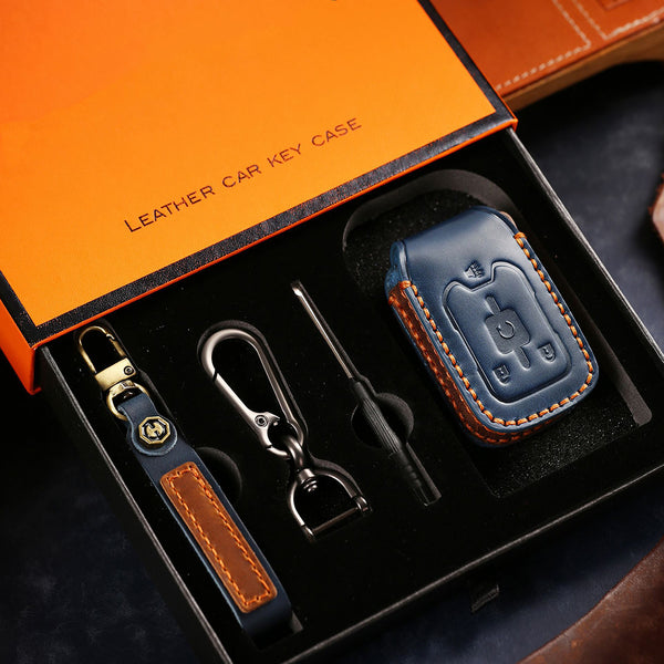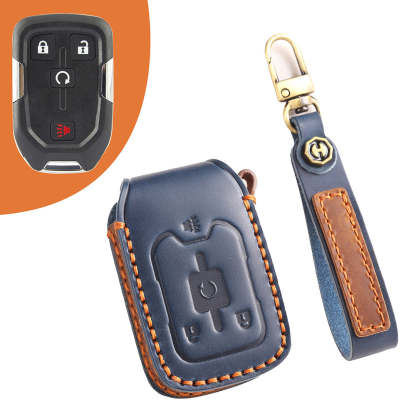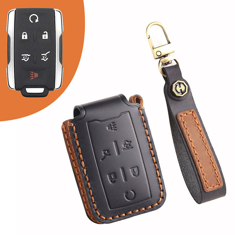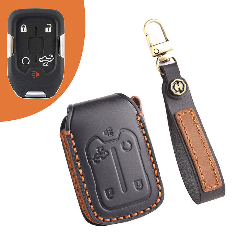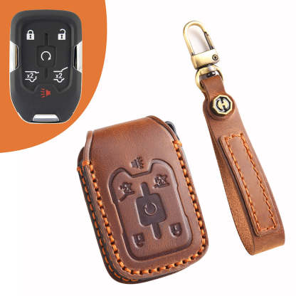 Genuine Leather Key Fob Cover for Chevrolet Colorado, Silverado & GMC Pickup (3-6 Buttons)