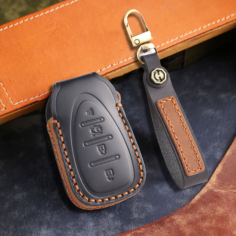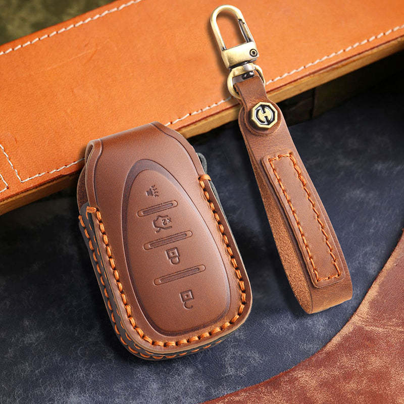 • Materials: Made from 100% high-quality top-grain cowhide, this key cover offers superior durability, rich texture, and resistance to wear and fading, with a premium, high-end feel.