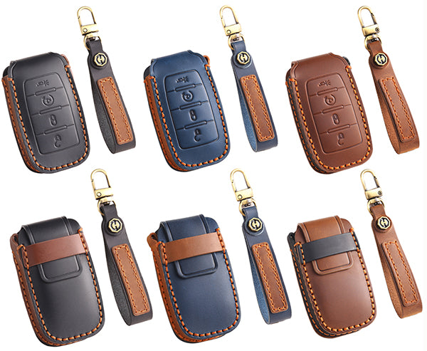 • 【Materials】: Made of high quality cowhide. fashionable, novel, durable and feel good. Make your key look brand new and high quality, and better identify your car key. Leather key chain prevents key loss and is easy to carry. Give your car keys a new protective cover.