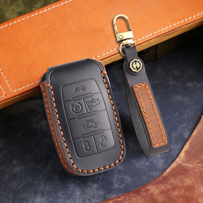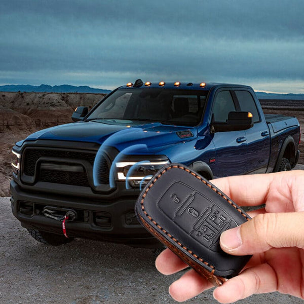 Genuine Leather Key Fob Cover for Dodge Ram 2500, 3500, 4500, 5500, Compatible with RAM Pickup Models (4-6 Button)