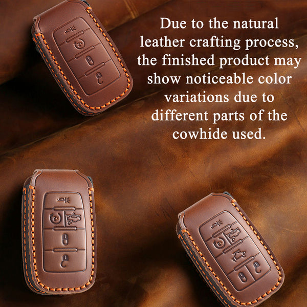 • Materials: Made from 100% high-quality top-grain cowhide, this key cover offers superior durability, rich texture, and resistance to wear and fading, with a premium, high-end feel.