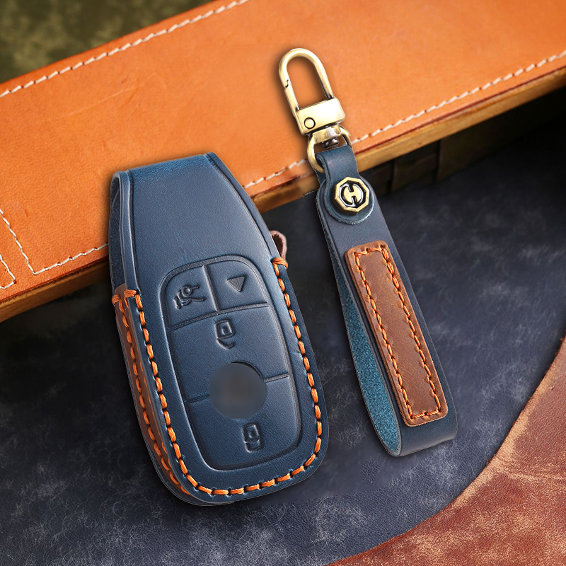 Genuine Leather Key Fob Cover for Mercedes-Benz C-Class, G-Class, E-Class, GLK, R350, GL, and GLC Models