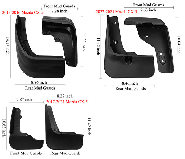 Mud Flaps for 2013-2025 Mazda CX-5 - 4PCS Front & Rear Wheel Splash Guards