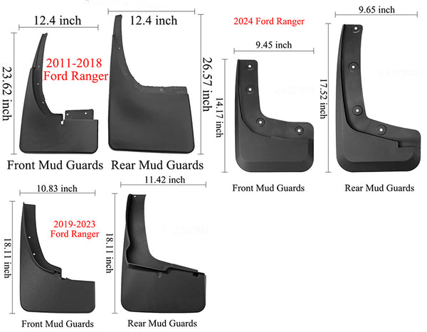 Mud Flaps for 2011-2025 Ford Ranger Front Rear Set 4PCS Splash Guards Fender Flares