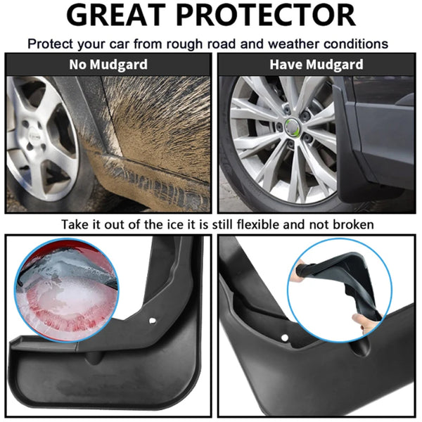 【Excellent Protection】: The mud guards and splash guards seamlessly blend with the vehicle's styling, providing a perfect fit while minimizing the risk of dirt, road debris, and stone chips flying up from the front and rear tires. They help prevent scratches, nicks, dents, and other damage.