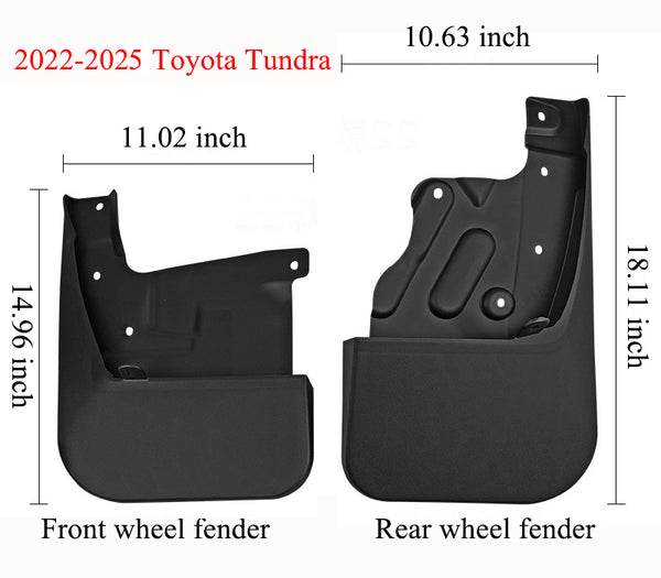 Mud Flaps for Toyota Tundra 2007-2025 , All-Weather Splash Guards , No-Drill Front & Rear Mudguards Set (4PCS)