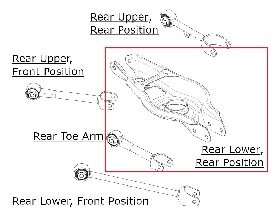 - Rear position, lower control arm on the rear suspension (fits either side)