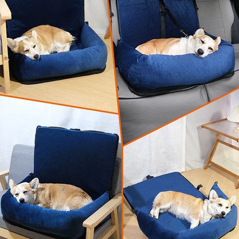 【Multifunctional Use】The seat belt of the dog car seat can be removed and put into the side pocket. After removing the seat belt, the backrest can be folded up and used as a bed for dogs at home; it can also be used on the sofa to protect the sofa from Dog damage.