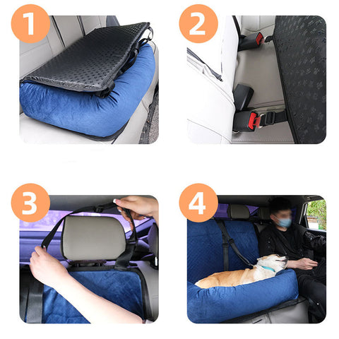 【Safe And Comfortable】Super soft short plush fabric, high-density sponge, high-resilience environmentally friendly PP cotton, 3cm wide car seat belt, high-quality non-slip bottom, bold safety buckle; high-performance car dog bed, so that dogs will not be in the car Feeling scared or anxious, ideal for traveling with your dog.