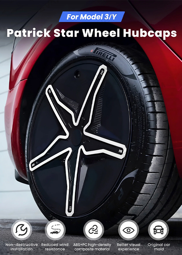 These wheel covers are suitable for Model Y 19" and Model 3 18" wheels and are designed with stylish sporty style. They provide full coverage for enhanced protection and are made of durable ABS material. They not only change the appearance of your car but also protect the alloy wheels inside. Easy to install and remove. (Note: Not available for the 2024 Tesla Model 3 Highland)
