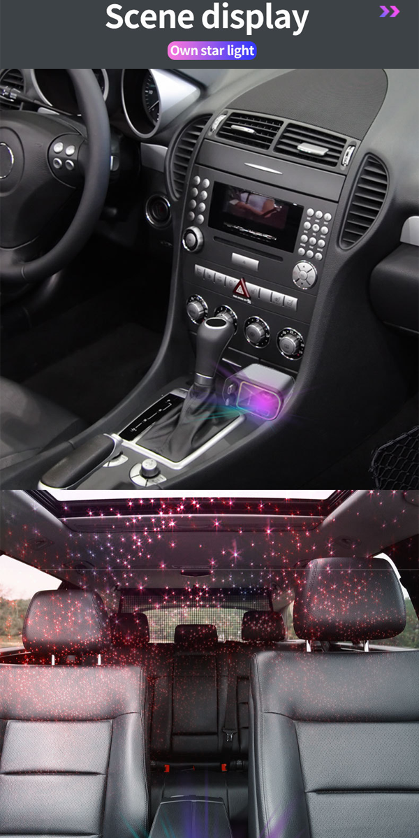 Starlight Experience: Transform your car into a starry oasis with our Starlight Headliner Charger. It quickly charges your devices and projects a starry sky inside your car, creating an enchanting ambiance.