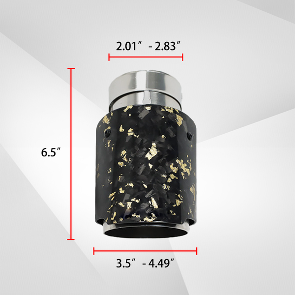 Compatibility Suitable for most cars.Inlet Diameter: 2.01″ - 2.83″ (fits original exhaust pipes with an outer diameter of 1.89″-2.72″).Outlet Diameter: 3.5″ - 4.49″.