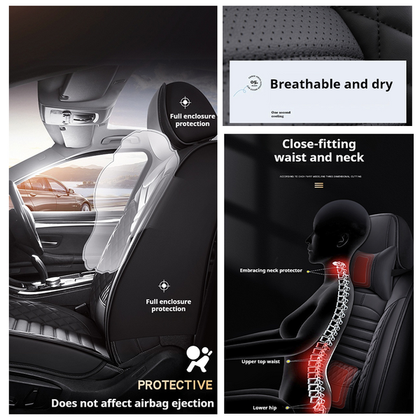 Universal Leather Car Seat Covers With Lumbar Support Fit for Most Cars